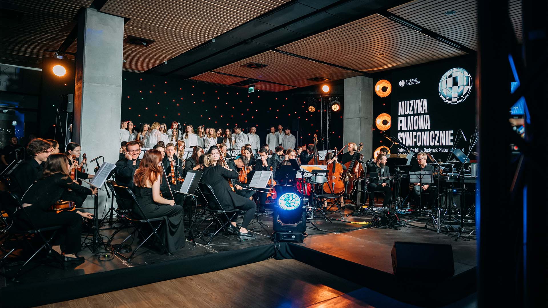 3.12.2023 r. w Fabryce Norblina mieliśmy przyjemność gościć orkiestrę symfoniczną e-Banku Talentów, pod batutą Jana Stokłosy. Młodzi muzycy wraz z chórem wykonali dla publiczności hity muzyki radiowej oraz filmowej.