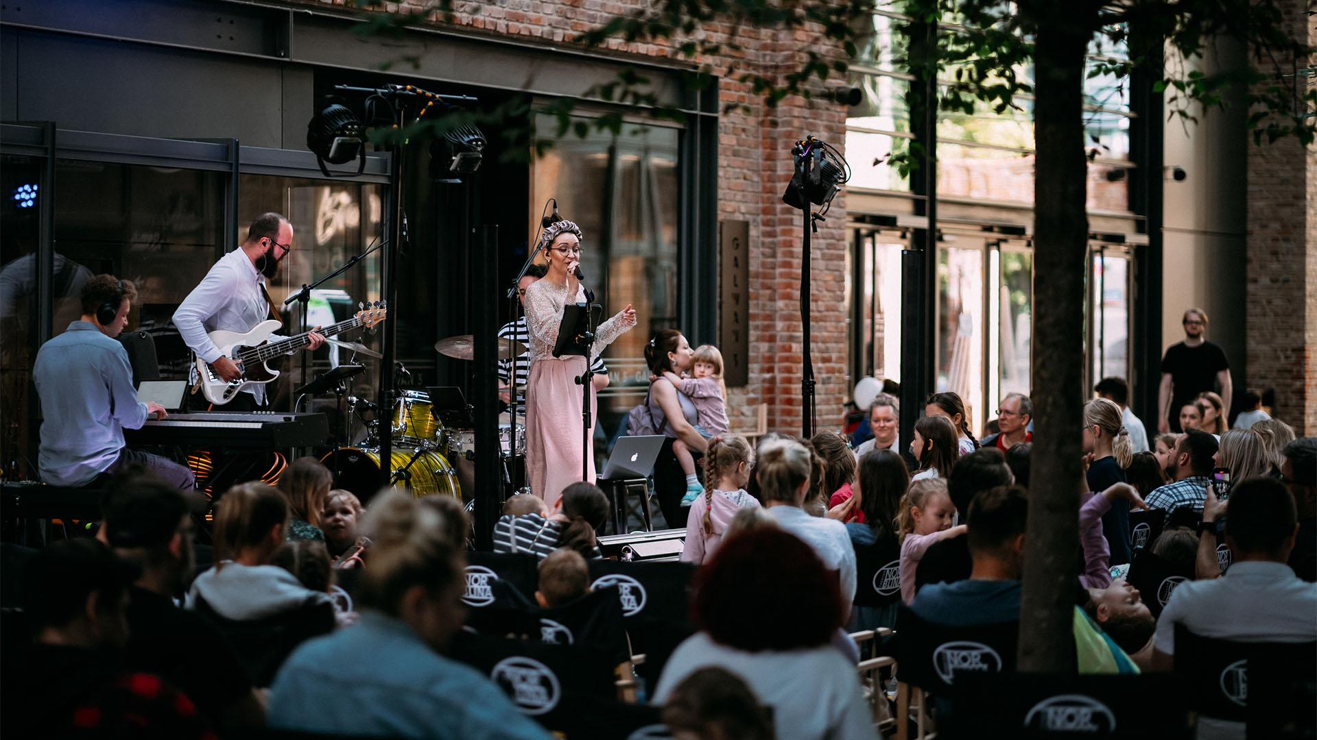 1-2 czerwca 2024 r. obchodziliśmy w Fabryce Norblina weekend dziecka. Fundacja po raz kolejny zadbała o wrażenia artystyczne dla całych rodzin, odwiedzających nasz kompleks. Na scenie mieliśmy przyjemność gościć: Weronikę Bochat-Piotrowską – znaną z polskiej wersji disneyowskiego filmu „Vaiana”, śpiewaka i aktora, Tomasza Steciuka oraz kompozytora muzyki teatralnej i filmowej, Marcina Nagnajewicza oraz Taraskę z zespołem.